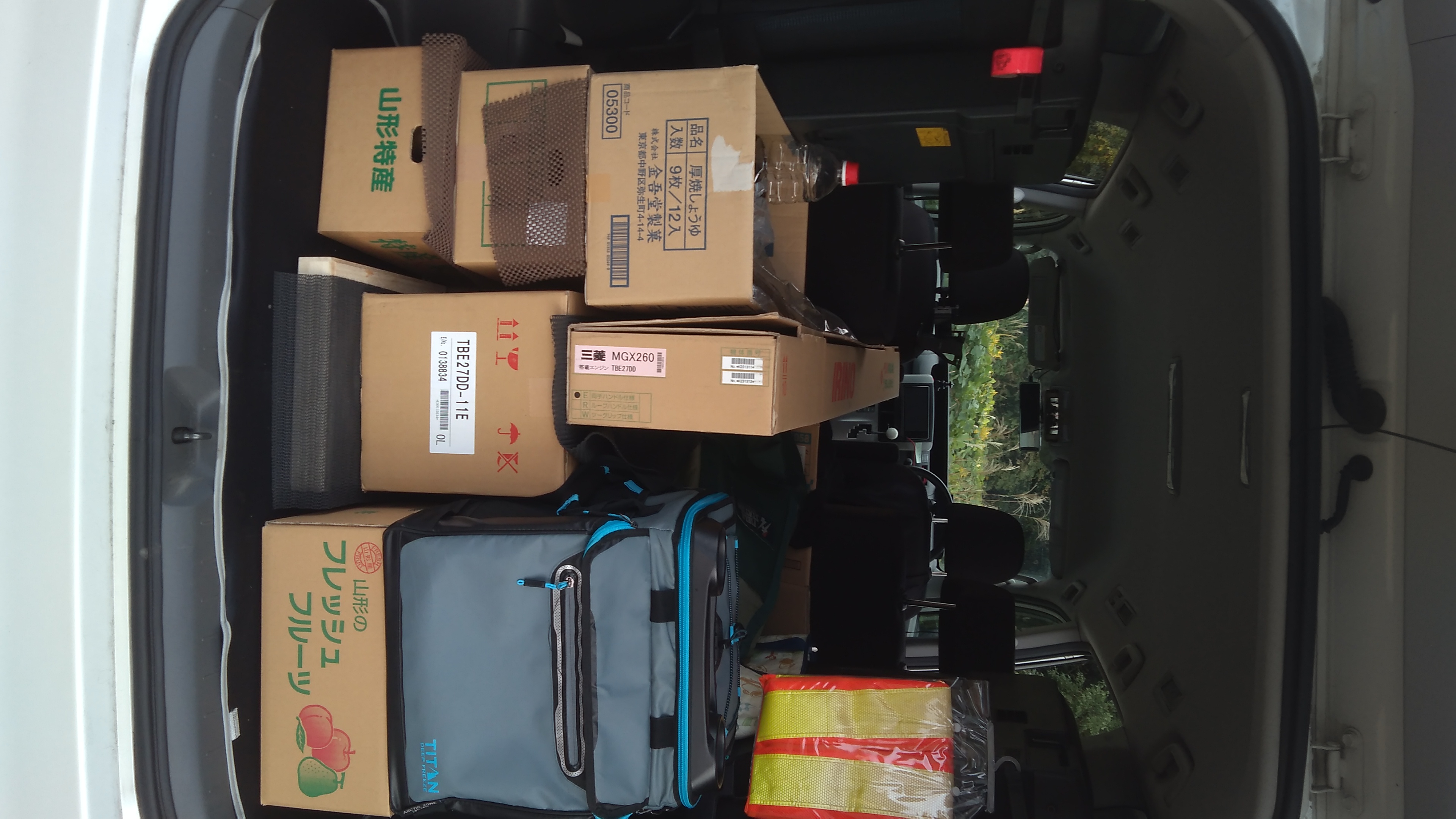 リンゴとラ・フランスと、刈り払い機を詰め込んで。